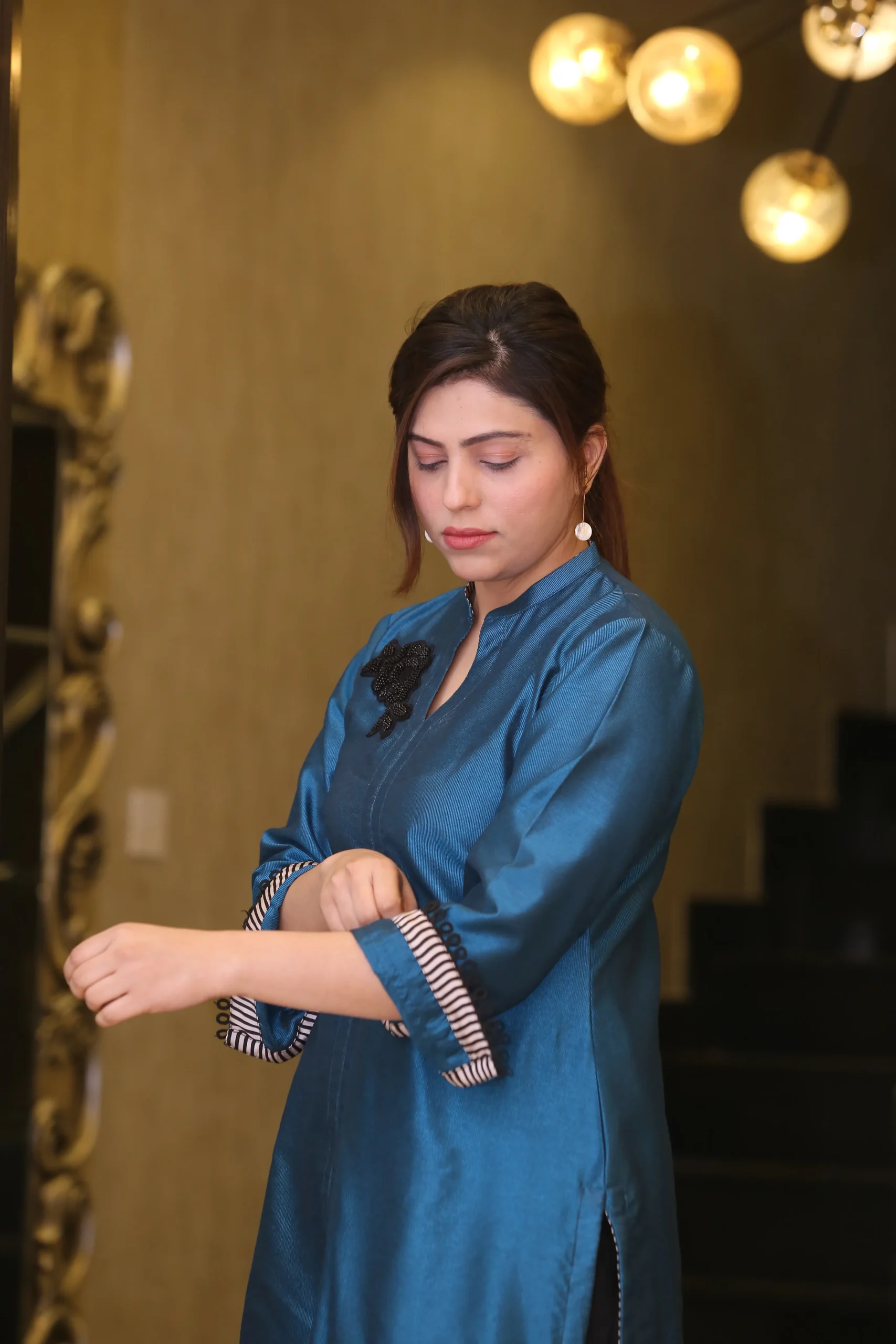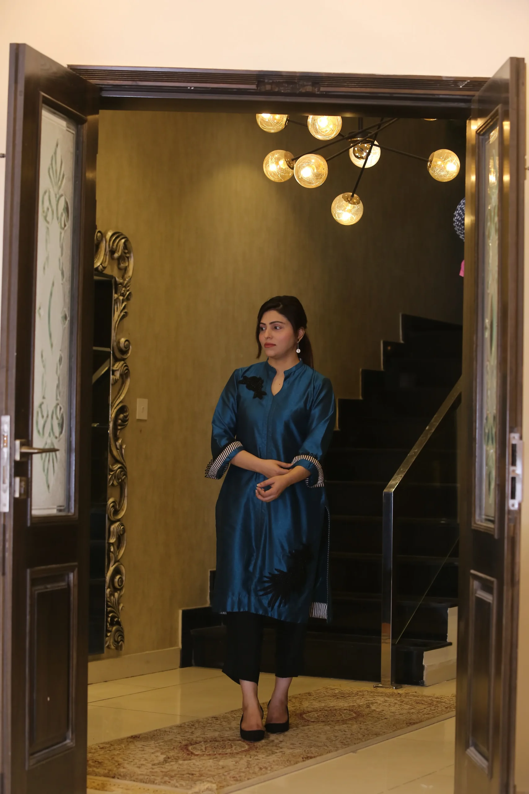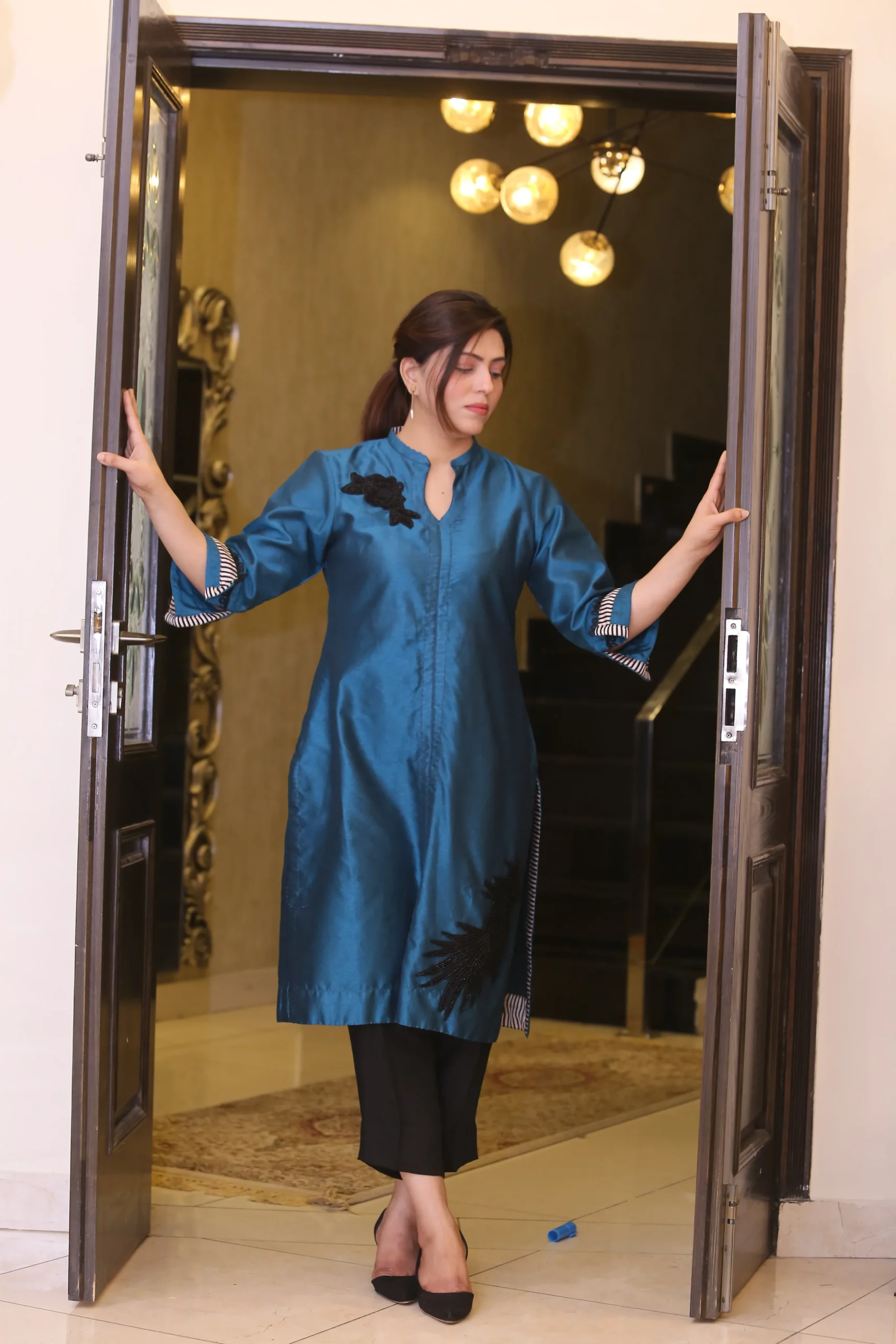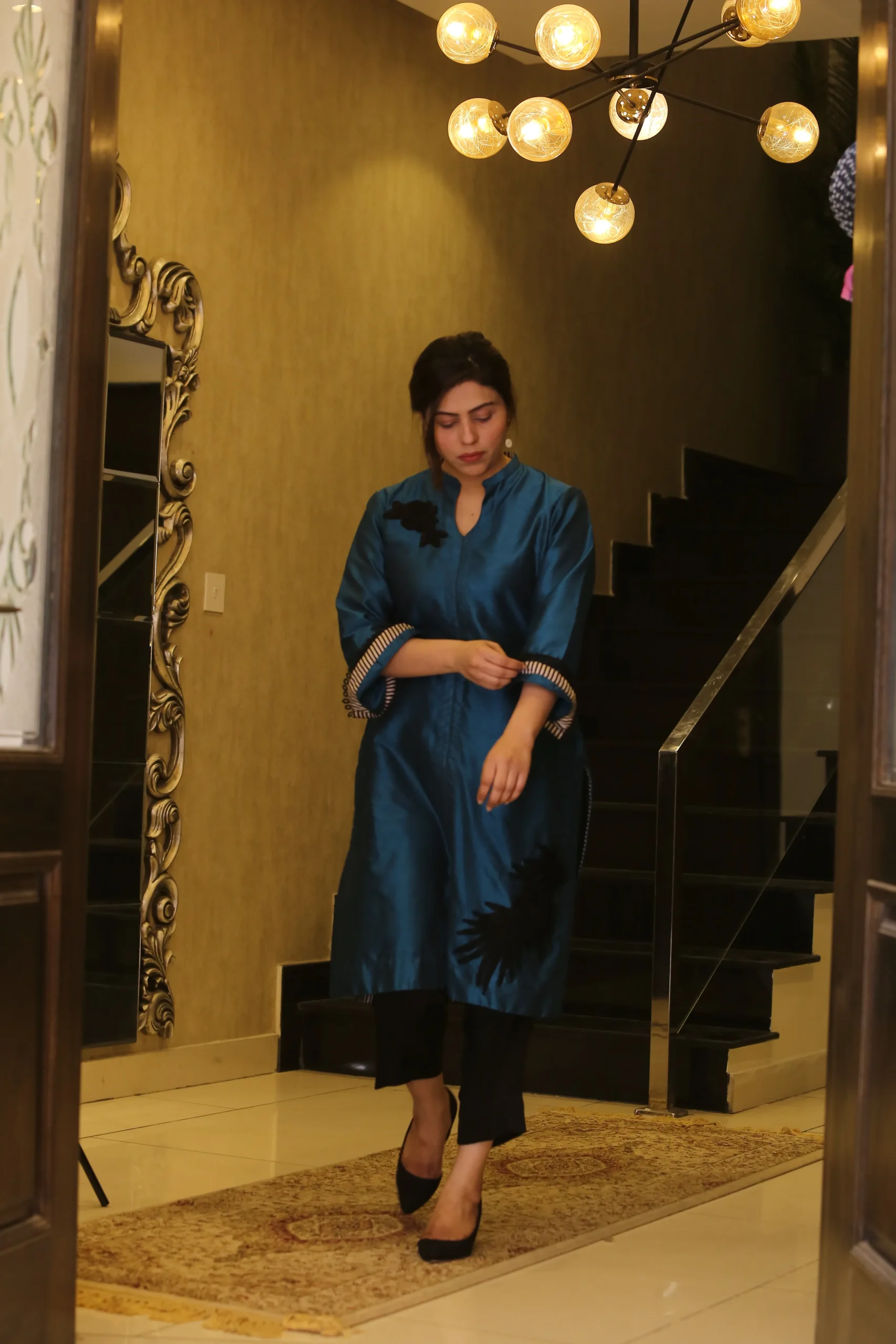 • Handcrafted Embellishments: Each element is adorned with exquisite handcrafted details like delicate beads and shimmering sequins, adding a touch of refined elegance and opulence.